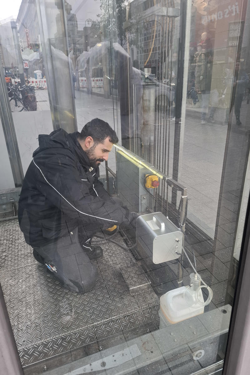 Entstanden ist das Reinigungsmittel im Labor. „Die Bakterienstämme vermehren sich bei Feuchtigkeit und wirken deutlich länger als chemische Reinigungsmittel“, erklärt Schöneweiß. Vor allem Uringeruch soll hierdurch bekämpft werden. Bei den Aufzügen am Neumarkt werden derzeit Zerstäuber getestet, die den Enzymreiniger vollautomatisch in Aufzugschächten versprühen, denn auch die Fahrstühle werden mitunter als Toilette missbraucht.